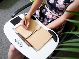 LapDesk Cuculo je praktickou podložkou pod notebook nebo tablet. Podložku můžete snadno používat při sezení díky látkovému polštáři vyplněnému PE granulátem. Díky němu se podložka výborně přizpůsobí nohám.