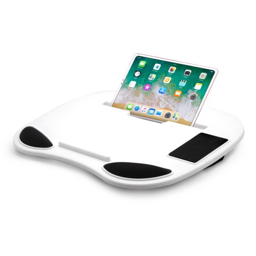 Praktická kolenní podložka pro práci s notebookem či tabletem v bílé barvě.