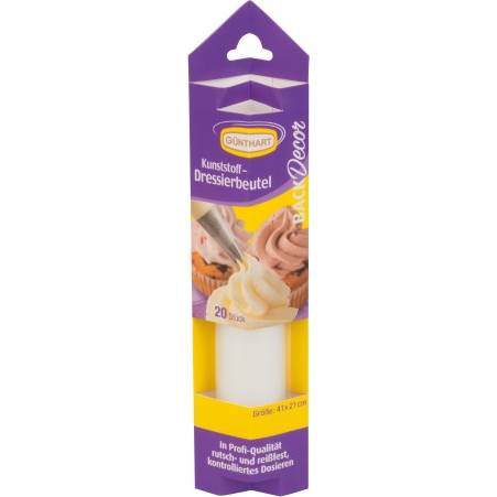 Cukrářský sáček na zdobení Gunthart. Je opatřen otvorem, ale je plně kompatibilní se zdobicími koncovkami Gunthart.