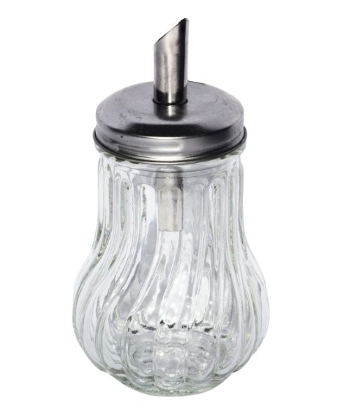 Skleněná cukřenka s víčkem a dávkovačem z nerezi 18/0.