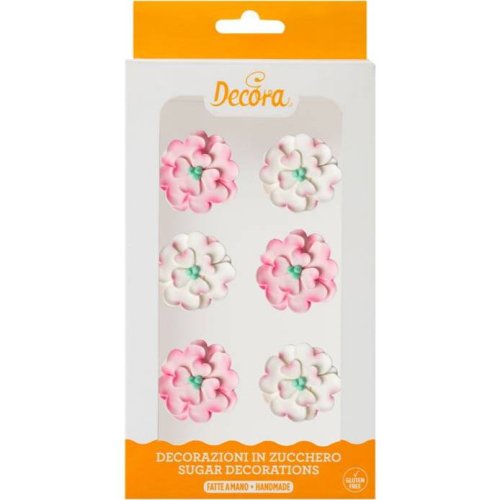Cukrové dekorace bílo-růžové kytičky.