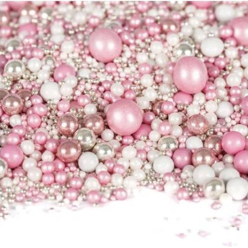Cukrové a čokoládové perličky růžový mix. Balení 90 g.