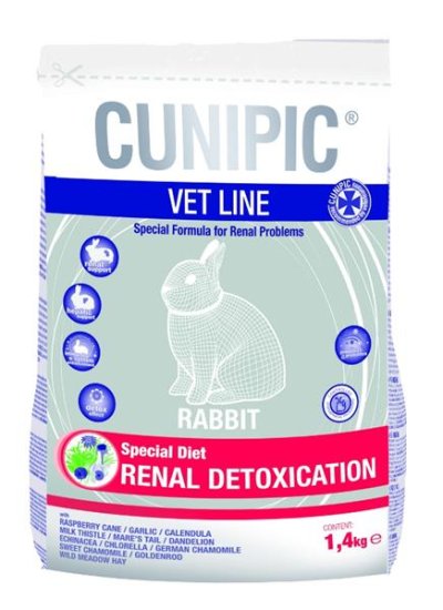 Kompletní vyvážené krmivo s detoxikačním účinkem na vnitřní orgány. Receptura obsahuje léčivé rostliny, které mají příznivé účinky na játra a ledviny býložravců. Tyto bylinky jsou také schopné odstraňovat toxické látky z těla a posilovat imunitní systém. Indikace: chronické selhání ledvin (CRF), akutní selhání ledvin (ARF), nespecifická toxická onemocnění, prevence recidiv urolitů, jaterní encefalopatie, pooperační stavy (detoxikace po anestezi), po antibiotické nebo protizánětlivé léčbě. Kontraindikace: březost, kojení, mláďata do 4 měsíců. Složení: Luční seno, slunečnicová moučka, pšeničná moučka, heřmánek pravý (Matricaria recutita), ostropestřec mariánský (Silybum marianum), přeslička luční (Equisetum pratense), pampeliška lékařská (Taraxacum officinale ), ječmen, vojtěška (alfalfa), chlorela (Chlorella spp.), zlatobýl obecný (Solidago virgaurea), měsíček lékařský (Calendula officinalis), česnek (Allium sativum), maliník (Rubus idaeus), přírodní prebiotika a probiotika, třapatka nachová (Echinacea purpurea). DOPLŇKOVÉ LÁTKY: NUTRIČNÍ DOPLŇKOVÉ LÁTKY/kg: Vitamín A 10.000 m.j., vitamín D3 1.000 m.j, vitamín E 35mg. Omega 3 a omega 6 mastné kyseliny. Analytické složky: Hrubý protein 12,5 %, hrubé oleje a tuky 2,4 %, hrubý popel 3,5 %, hrubá vláknina 18,5 %, vlhkost 11,22 %.