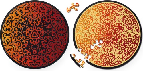 dva motivy v jednom puzzle = dvojnásobná výzva, neobvyklé tvary dílků, vysoce kvalitní dřevěné dílky, pevná krabička s kovovým víčkem, ideální jako dárek.