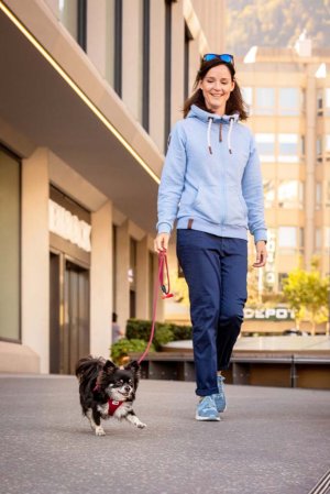 Lehký a pohodlný postroj pro malé a středně velké psy. Vodítko a postroj lze připnout jednou rukou pomocí přezky. Vysoce pevný materiál přezky, který vydrží tahové zatížení až 100 kg. Tato přezka eliminuje "cvakání" kroužků typu D. Výrazně vylepšená ergonomie postroje a optimalizovaný střih díky novému designu a nové velikostní stupnici. Postroj je vyroben z lehkého materiálu Air-Mesh spony pro pohodlné nošení. Velikost postroje lze nastavit pomocí suchého zipu. Postroj je vyroben tak, aby bylo optimálně rozloženo napětí a nedošlo k poranění krku. Polstrovaná přezka zajišťuje, že se srst nezachytí ani nepodráždí.