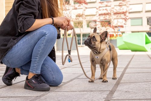 Postroj a vodítko lze nyní připnout jednou rukou pomocí spony. Vysoce pevný materiál spony vydrží tahové zatížení až 100 kg. Tato spona eliminuje „cvakavý“ zvuk klasických D kroužků a zároveň snižuje hmotnost postroje.
