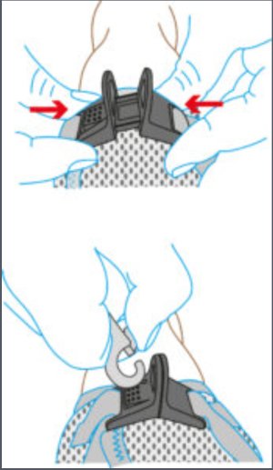 Vodítko a postroj lze připnout jednou rukou pomocí spony. Vysoce pevný materiál spony vydrží tahové zatížení až 100 kg. Tato spona eliminuje „cvakavý“ zvuk klasických D kroužků.