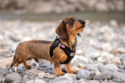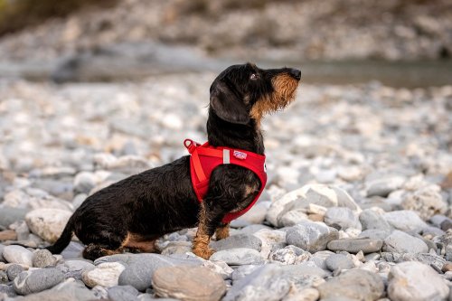 Postroj vhodný pro menší a středně velké psy nyní vylepšený o praktickou sponu. Je odolný vůči větru a vodě díky materiálu softshell, který je podšit lehkou prodyšnou síťovinou Air-Mesh. Rychlé a snadné oblékání. Nastavitelná velikost pomocí suchého zipu, aby se tak postroj dokonale přizpůsobil tělu psa. Překřížené nylonové popruhy zajišťují optimální rozložení napětí a chrání před poraněním krku. Polstrovaná přezka zajišťuje, aby se srst nezachytávala ani nedráždila. Postroj a vodítko lze nyní připnout jednou rukou pomocí spony. Vysoce pevný materiál spony vydrží tahové zatížení až 100 kg. Tato spona eliminuje „cvakavý“ zvuk klasických D kroužků a zároveň snižuje hmotnost postroje.