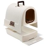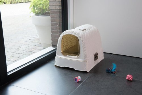 Záchod pro kočky dokonale zapadne do vašeho interiéru díky elegantnímu designu z polypropylenové pryskyřice, který imituje strukturu přírodního ratanu, takže v daném prostředí nebude působit nijak rušivě. Navíc se velice snadno přenáší díky integrované rukojeti a je odolný vůči vytížení, hnilobě, vlhkosti a vodě i proti UV záření, takže můžete záchod v klidu umístit na zahradu, terasu či balkón. Tento výrobek je navíc ekologický, jelikož toaleta vznikla ve spolupráci s asociací Waste Free Ocean, takže použitý materiál pochází z plastů získaných při čištění oceánů.