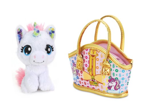 Plyšový mazlíček v taštičce se stane tvým oblíbeným kamarádem na cesty. Zvířátko je ve 4 designech: jednorožec, koťátko, štěňátko a koťátko jednorožec. Pro děti od 1roku.