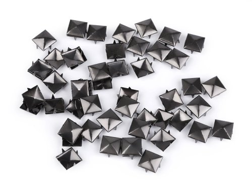 Kovové cvočky ve tvaru pyramidy jsou moderním doplňkem oblečení. Jistě jste je viděli na rockerském oblečení. Dnes se s nimi můžete také setkat např. na kabelkách, obuvi, šatech, peněženkách, atd. [Cvočky jsou opatřeny nožičkami, které jdou ručně ohnout a jednoduše se tak připevní na látku.] Oděv či módní doplněk s těmito ozdobami lze prát.Můžete zakoupit v balení po 50 ks. Rozměry cvočku jsou 12 x 12 mm, výška včetně hrotů 8 mm, výška bez hrotů 4 mm.