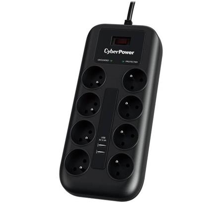 Přepěťovka CyberPower Surge protection s 8-mi českými zásuvkami a 2-mi USB porty