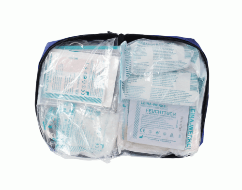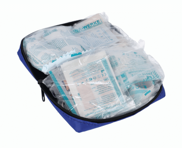 v souladu s DIN 13167     textilní brašna: nylon     1x role přilnavé náplasti DIN 13019-A, 5 m x 2,5 cm     1x sada 14 náplastí, zahrnující: 4 obvazy DIN 13019-E 10 cm x 6 cm 2 obvazy na konečky …