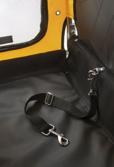 Vozík obsahuje upevňovací karabinu pro upnutí psa