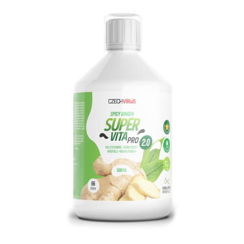 Multivitamín vhodný pro všechny včetně veganů s ovocnou a lehce pikantní chutí. Nová a inovovaná verze nejoblíbenějšího tekutého multivitamínu na trhu - SuperVita PRO V2.0. Extrémní nálož B-komplexu pro sportovce, přírodní vitamín A (beta-karoten), vitamín E i vitamín D3 (z lišejníku). Obsahuje všechny důležité vitamíny ve vysoké dávce, minerály v chelatových vazbách a pestré množství dalších látek pro podporu zdraví (Coenzyme Q10, Lutein, Zeaxanthin, Cholin, Ženšen, Zázvor, Ashwaganda...). Nové složení je navíc kompletně Vegan-friendly, ochuceno směsí ovocných šťáv z koncentrátu a slazeno steviol-glykosidy. All-in-one multivitaminová formule, naprostý základ suplementační pyramidy. NOVINKA: Rozdělili jsme SuperVita PRO V2.0 na dvě varianty. Sweet Orange chutná jako sladký pomerančový sirup a neobsahuje zázvor, Spicy Ginger obsahuje dvojnásobnou dávku zázvoru oproti původní příchuti a je lehce pikantní. SuperVita PRO V2.0 SuperVitu PRO V2.0 jsme stavěli na pevných základech původního produktu s využitím nových zkušeností a látek, které produkt znatelně inovují. SuperVita je tvořena tak, aby nabízela All-in-one produkt pro co nejširší pokrytí potřeb vitamínů a minerálů, důmyslně doplněna rostlinnými extrakty. Její účinky mohou využívat jak amatérští sportovci, tak profesionálové - výhodou tekuté formy je dávkování, které si můžete naprosto libovolně upravit dle svých potřeb. Pokud užíváte produkty, které některé látky obsahují, upravíte si množství a máte narposto perfektní kombinaci, kterou není možné dosáhnout kapslí nebo tabletou s pojivy. Věříme, že je SuperVita PRO V2.0 naprostou špičkou na trhu a stane se velmi brzy vaší jasnou volbou při výběru multivitamínových přípravků. Originální receptura od Czech Virus.