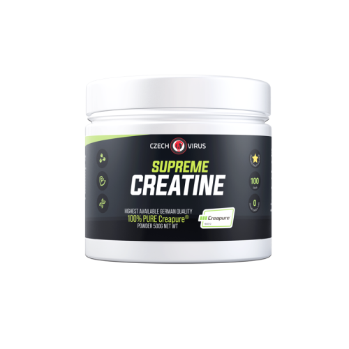 Jediný kreatin monohydrát původem z Německa, který je testován na nečistoty a zakázané látky. Kreatin monohydrát je jedním z nejznámějších a nejvyužívanějších doplňků stravy, které jsou na trhu dostupné. Jedná se o nejoblíbenější a nejosvědčenější formou kreatinu pro nabrání svalové hmoty. Kreatin je pravděpodobně nejúčinnější legální doplněk současnosti pro nabírání svalové hmoty, nárůst čistých svalů a síly. Je zdrojem kreatinfosfátu, zvyšuje fyzickou výkonnost při vysoce intenzivním fyzickém výkonu. Zásobuje svaly a nervové buňky energií. Některé z výhod Supreme Creatinu (100% Creapure®):