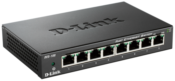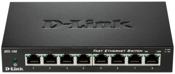 PŘEHLED Přepínač D-Link DES-108 Fast Ethernet poskytuje pro SOHO a SMB cenově výhodný způsob, jak vytvořit malou síť a připojit počítače, bezdrátové přístupové body, IP kamery, síťové tiskárny a další ethernetová zařízení rychle a snadno bez složité konfigurace. Tento přepínač je dodáván s 8 porty Fast Ethernet s funkcí automatického snímání pro detekci maximální rychlosti připojených zařízení, což vám umožní provozovat vaši síť s nejlepším možným výkonem. Díky designu bez ventilátoru je DES-108 zcela tichý, takže je ideální pro kanceláře, knihovny nebo zasedací místnosti.