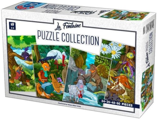 Dětské puzzle s různou obtížností - čtyři samostatné puzzle o velikosti 16x24 cm, ale s různým počtem dílků - 24, 35, 48, 60 - postupně vedou ke zdokonalování dítěte při skládání a zvyšování obtížnosti.