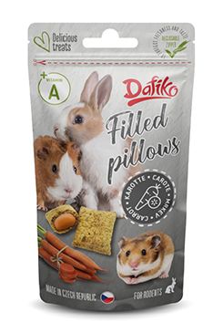 Chutný pamlsek ve formě křupavých polštářků plněných mrkví, vhodný jako odměna nebo zpestření běžné denní krmné dávky hlodavců. Díky obsahu mrkve a přidaných vitaminů je pamlsek nejen chutný, ale i funkční.