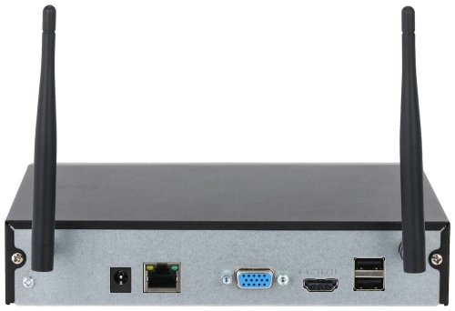 Zařízení nabízí 1× Ethernet port 10/100 Mbps, 2× USB 2.0 pro zálohovací média, výstupy HDMI a VGA pro připojení displejů. Wi-Fi modul pracuje v režimu AP pro vytvoření dedikované sledovací sítě nebo v režimu Station pro připojení k existující síti.