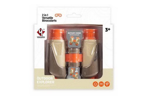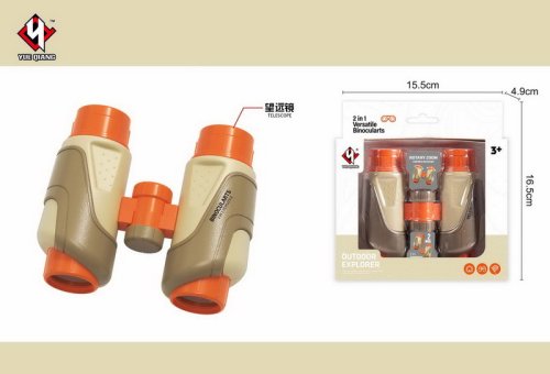 Dalekohled 2v1. Rozměry 11x11 cm. Dalekohled lze rozložit a používat jako monokulár. Součástí popruh.