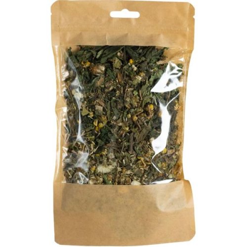 Sušená bylinná směs je vhodným doplňkem stravy pro králíky a hlodavce. Bylinky pocházejí z českých luk. Kvalitu každého balení zaručuje ruční plnění. Heřmánek působí pozitivně při onemocněních dýchacích cest, ale také při potížích se zažíváním. Působí protizánětlivě a desinfekčně. Uvolňuje křeče. Květ pampelišky je vhodný spíše pro mladší králíky kvůli většímu obsahu vápníku. Obsahuje velké množství vitamínu C. Ostružina obsahuje velké množství kyseliny listové. Oregano může zmírňovat střevní potíže. Obsahuje vysoké množství vlákniny a vitamín C, který působí jako antioxidant. Kopřiva obsahuje velké množství vitamínů a minerálních látek pro podporu imunity a správného zažívání. Složení: heřmánek květ 10 %, pampeliška květ 15 %, ostružina 25 %, oregano 25 %, kopřiva list 25 %. Krmný návod: Přidávejte denně ke krmné dávce nebo volně jako pamlsek. Množství přizpůsobte druhu, věku a zdravotnímu stavu zvířete. Zvířeti zajistěte nepřetržitý přístup k čerstvé pitné vodě.