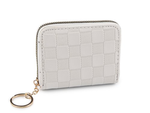 Dámská peněženka s povrchovou kostkovanou strukturou je elegantním a stylovým doplňkem, který upoutá pozornost. Je ideální pro každodenní použití, díky kompaktnímu rozměru se snadno vejde do různých typů kabelek či batohů. Zavírá se na zip. Uvnitř najdete hlavní prostor oddělený přepážkou na dva menší. V přepážce je mincovník na zip. Po stranách jsou ještě 4 přihrádky na karty.