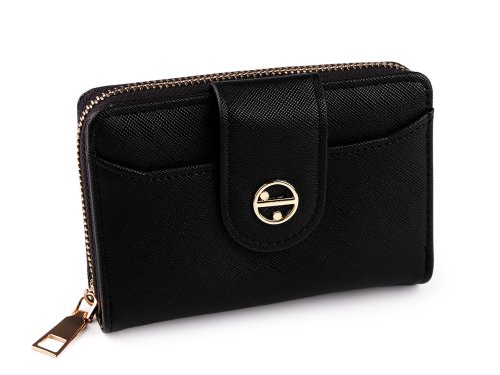 Dámská peněženka s kapsou má mladistvý design. Je zkrášlená velkou zápinkou s kovovou ozdobou. Přední strana peněženky se uzavírá zápinkou s magnetickým zapínáním. Uvnitř najdete přihrádky na kreditní karty, z toho 1 má průhledné okýnko. Je zde umístěná i přihrádka na bankovky. Kapsičku na mince najdete na boku peněženky, zapíná se na zip. Separací je oddělená na 2 oddíly, v separaci je umístěná malá kapsička na zip.