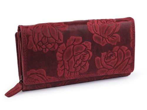 Luxusní dámská peněženka z pravé kůže má velice kvalitní provedení a chytrý design. Má elegantní povrch s velkými raženými květy. Peněženka č.1 - 9] má přední stranu na klopu s 2 patenty. Nabídne své majitelce velké množství kapes a přihrádek. Kromě velkého úložného prostoru na bankovky, má i uzavítratelnou kapsu na mince, kapsu na doklady, místo pro uložení 10 platebních nebo věrnostních karet a mnoho dalších kapes pro vaše použití. Peněženky č.10 - 18 jsou dlouhé 17 cm. Klopu na patent mají z přední i zadní strany. Nabídnou své majitelce velké množství kapes a přihrádek. Kromě velkého úložného prostoru na bankovky, mají i uzavítratelnou kapsu na mince, kapsu na doklady, místo pro uložení 21 platebních nebo věrnostních karet a mnoho dalších kapes. Upozorňujeme zákazníky, že odstíny peněženek se mohou mírně lišit. [Některé peněženky mohou mít zip ze zadní strany nebo mohou mít zapínání na přezku.]