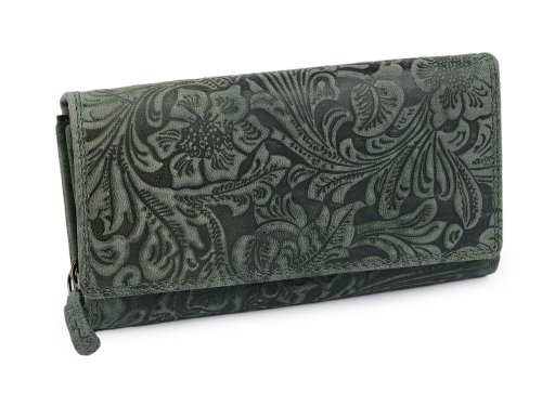 Luxusní dámská peněženka z pravé kůže má velice kvalitní provedení a chytrý design. Má elegantní povrch s velkými raženými květy. Peněženka č.1 - 9] má přední stranu na klopu s 2 patenty. Nabídne své majitelce velké množství kapes a přihrádek. Kromě velkého úložného prostoru na bankovky, má i uzavítratelnou kapsu na mince, kapsu na doklady, místo pro uložení 10 platebních nebo věrnostních karet a mnoho dalších kapes pro vaše použití. Peněženky č.10 - 18 jsou dlouhé 17 cm. Klopu na patent mají z přední i zadní strany. Nabídnou své majitelce velké množství kapes a přihrádek. Kromě velkého úložného prostoru na bankovky, mají i uzavítratelnou kapsu na mince, kapsu na doklady, místo pro uložení 21 platebních nebo věrnostních karet a mnoho dalších kapes. Upozorňujeme zákazníky, že odstíny peněženek se mohou mírně lišit. [Některé peněženky mohou mít zip ze zadní strany nebo mohou mít zapínání na přezku.]
