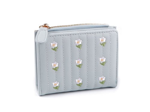 Dámská peněženka s výšivkou malých květů zaujme na první pohled. Její velikost je tak akorát do kabelky. Květy jsou na přední straně, prošívané pruhy jsou i na zadní straně peněženky. Přední strana peněženky se zapíná na patent. Uvnitř najdete 6 přihrádek na kreditní karty, z toho 1 má průhledné okýnko. Je zde umístěná i přihrádka na bankovky. Kapsičku na mince najdete na boku peněženky, zapíná se na zip.