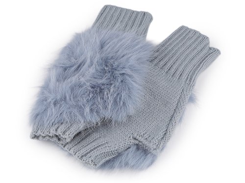 Dámské / dívčí pletené rukavice bezprsté s kožešinou - modrá světlá
