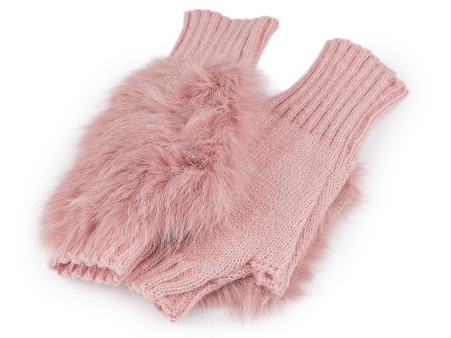 Dámské / dívčí pletené rukavice bezprsté s kožešinou - pudrová