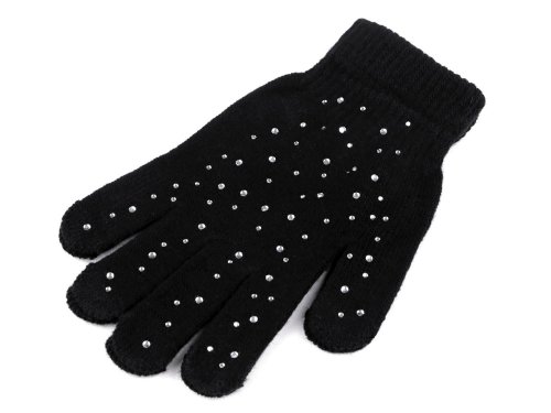 Pletené rukavice ozdobené lesklými kamínky jsou ideálním doplňkem do sychravého podzimního a zimního počasí. Jsou pružné, z jemné pleteniny. Ruce se skvěle přizpůsobí, navíc se výborně natahují. Díky pružnému lemu kolem zápěstí pevně drží - nesklouzávají. Šířka je měřená na volně položených rukavicích uprostřed (bez palce).
