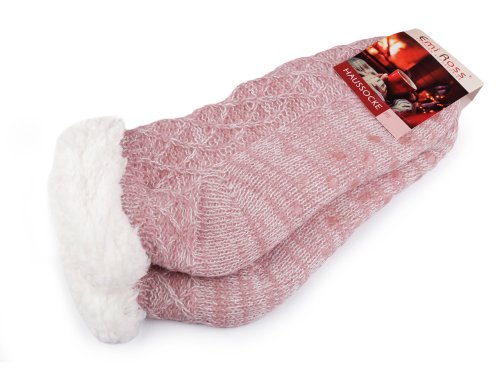 [Kratší teplé ponožky] vás skvěle zahřejí. Jsou heboučké, z vrchní strany pletené, uvnitř je teplá chlupatá podšívka, která věrně imituje vlnu. Protiskluzové gumové plošky na chodidle zabrání uklouznutí, můžete je používat i jako domácí obuv. Široký měkký lem je příjemný [na nošení. ]