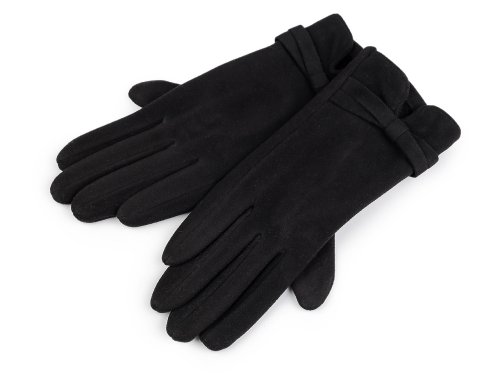 Dámské rukavice s ozdobnou manžetou jsou velice elegantní. Teplý pružný úplet se ruce skvěle přizpůsobí. Uvnitř je jemný plyš, jenž je velice příjemný na dotek. Tento módní doplněk se hodí do zimy nebo do chladnějšího podzimního počasí. Na ukazováčku pravé i levé ruky je vyšitý květ, díky kterému můžete ovládat dotykové přístroje - mobil, tablet, bankomat apod. Šířka je měřená na volně položených rukavicích uprostřed (bez palce).