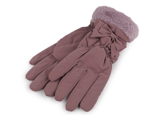 Elegantní šusťákové rukavice jsou ozdobené mašlí a lemem z umělé kožešiny. Využijete je ke sportovním bundám a vestám, ale hodí se i na běžné nošení ke kabátům. Na ukazováčku pravé ruky je speciální tkanina, díky které můžete ovládat dotykové přístroje - mobil, tablet, bankomat apod. Uvnitř mají plyšový kožíšek, který vás příjemně zahřeje. Jsou vhodné do zimy nebo do chladnějšího podzimního počasí. Šířka je měřená na volně položených rukavicích uprostřed (bez palce). Jsou zabalené v zipovém sáčku, který má horní stranu transparentní.