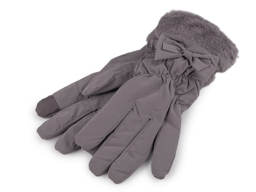 Elegantní šusťákové rukavice jsou ozdobené mašlí a lemem z umělé kožešiny. Využijete je ke sportovním bundám a vestám, ale hodí se i na běžné nošení ke kabátům. Na ukazováčku pravé ruky je speciální tkanina, díky které můžete ovládat dotykové přístroje - mobil, tablet, bankomat apod. Uvnitř mají plyšový kožíšek, který vás příjemně zahřeje. Jsou vhodné do zimy nebo do chladnějšího podzimního počasí. Šířka je měřená na volně položených rukavicích uprostřed (bez palce). Jsou zabalené v zipovém sáčku, který má horní stranu transparentní.