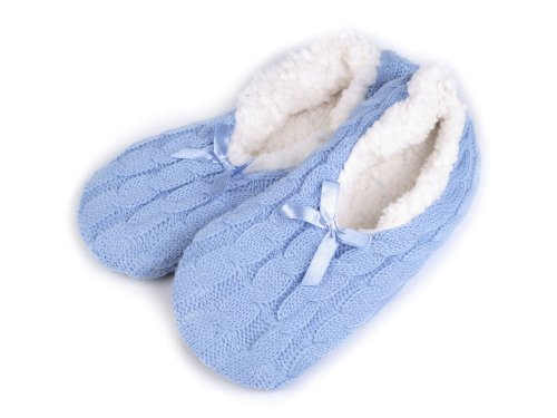 Dámské balerínky jsou skvělé jako domácí obuv. [Z vrchní strany je pletenina s copánkovým vzorem, uvnitř je teplá chlupatá podšívka, která věrně imituje vlnu.] Protiskluzové gumové tečky na chodidle zabrání uklouznutí. Upozorňujeme zákazníky, že složení na štítcích se může lišit, materiál je akryl, polyamid a polyester.