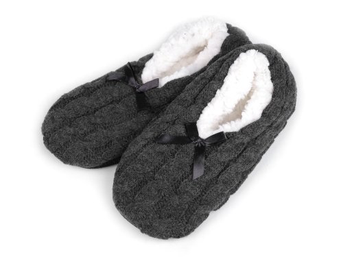 Dámské balerínky jsou skvělé jako domácí obuv. [Z vrchní strany je pletenina s copánkovým vzorem, uvnitř je teplá chlupatá podšívka, která věrně imituje vlnu.] Protiskluzové gumové tečky na chodidle zabrání uklouznutí. Upozorňujeme zákazníky, že složení na štítcích se může lišit, materiál je akryl, polyamid a polyester.