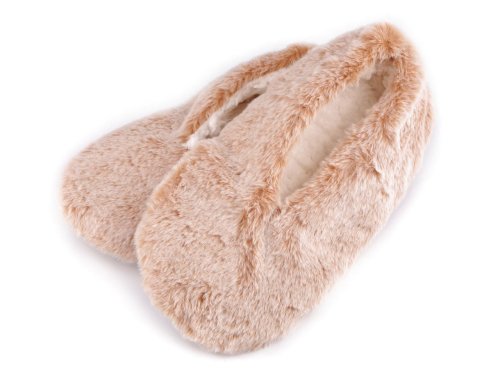 Dámské balerínky jsou skvělé jako domácí obuv. Jsou heboučké, [z vrchní strany mají umělou kožešinu], uvnitř je teplá chlupatá podšívka, která věrně imituje vlnu. Protiskluzové gumové tečky na chodidle zabrání uklouznutí. Upozorňujeme zákazníky, že složení na štítcích se může lišit, materiál je akryl, polyamid a polyester. [Vnitřní délka u velikosti 35-38 je 23 cm, u velikosti 39-42 je 26 cm.]