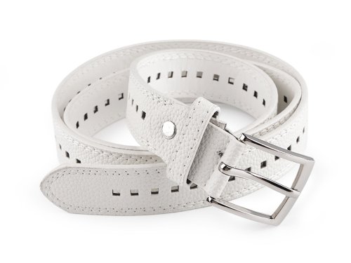 Dámský pásek s oky po celé délce se řadí k nadčasovým modelům. Je vyrobený z eko kůže, některé pásky jsou čistě hladké, některé mají na povrchu efektní vzor kůže. Mohou jej nosit i dívky, protože obvod pásku si lehce přizpůsobí svému pasu. Díky jednoduchému designu se dá dobře kombinovat se širokou škálou oděvů. Má klasickou kovovou sponu na zapnutí a štepování po obvodu. Maximální obvod zapnutí je 107 cm.