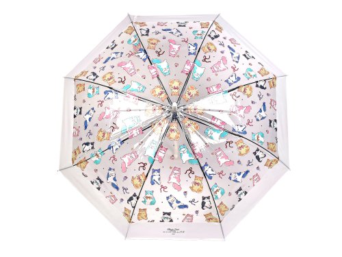 Průhledný deštník s barevným potiskem koček je ideální volbou pro všechny milovnice hravých módních doplňků. Je vystřelovací, okraj má ozdobený širokým barevným lemem. Konstrukce deštníku je z kovového drátu a pružných lamel, tvoří osm polí. Díky nim je velice pevný, neohne se ani za největšího nečasu. Klasická tyč je zakončená pevnou rukojetí. Hloubka deštníku je 25 cm.