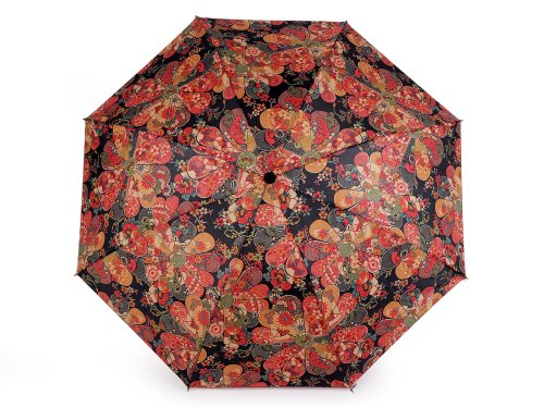 Dámský skládací deštník [zaujme svým potahem]. Je skladný, pohodlně se vejde do kabelky. Obstojí i v silném větru, pružné lamely zajišťují jeho vysokou pevnost a stabilitu. Konstrukce deštníku se skládá z osmi polí. Součástí deštníku je ochranný obal. Hloubka deštníku je 18 cm. Celková délka je 65 cm. Délka složeného deštníku je 25 cm.