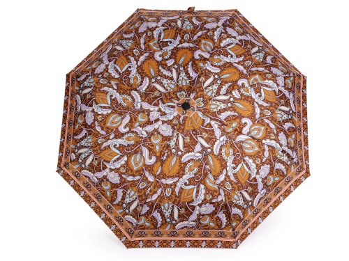 Velký dámský deštník je skládací, plně automatický Je vyrobený z kvalitního materiálu. Na potahu deštníku je poutavý paisley motiv. Deštník má vystřelovací / sestřelovací mechanizmus. Rozevře i zavře se stisknutím tlačítka se šipkou nahoru nebo dolů. Rukojeť deštníku je plastová, opatřená poutkem. Konstrukce deštníku se skládá z osmi polí. Součástí deštníku je ochranný obal. Hloubka deštníku je 21 cm. Celková délka je 56 cm. Délka složeného deštníku je 30 cm.