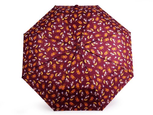Plně automatický skládací deštník je vyrobený z kvalitního materiálu. Na potahu, který má UV filtr, je motiv pejsků s deštníky. Deštník má vystřelovací/sestřelovací mechanismus. Rozevře i zavře se stisknutím tlačítka se šipkou nahoru nebo dolů. Rukojeť deštníku je plastová, opatřená poutkem. Konstrukce deštníku se skládá z osmi polí. Součástí deštníku je ochranný obal. Hloubka deštníku je 19 cm. Celková délka je 56 cm. Délka složeného deštníku je 29 cm.