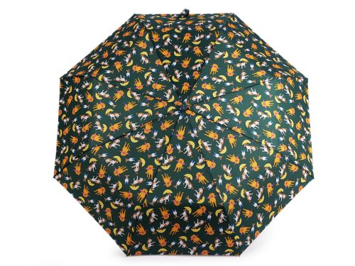 Plně automatický skládací deštník je vyrobený z kvalitního materiálu. Na potahu, který má UV filtr, je motiv pejsků s deštníky. Deštník má vystřelovací/sestřelovací mechanismus. Rozevře i zavře se stisknutím tlačítka se šipkou nahoru nebo dolů. Rukojeť deštníku je plastová, opatřená poutkem. Konstrukce deštníku se skládá z osmi polí. Součástí deštníku je ochranný obal. Hloubka deštníku je 19 cm. Celková délka je 56 cm. Délka složeného deštníku je 29 cm.