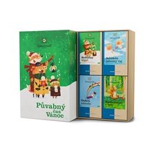 • Kazeta obsahuje čtyři druhy čaje: Světelný třpyt bio (27 g), Ježíškův nebeský čaj bio (27 g), Dobrá nálada bio (27 g), Nadechnutí v lese bio (21,6 g)