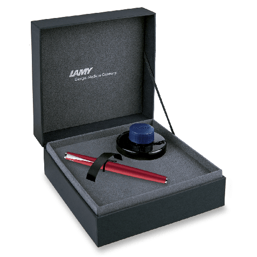 Dárková kazeta obsahuje:, * plnicí pero LAMY Studio Royalred Matt, * modročerný lahvičkový inkoust LAMY T 52, * voucher Akademie psaní