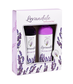 Levandulový olej má širokou škálu uplatnění. Je znám především pro své zklidňující a regenerační účinky. Báječně uvolňuje nejen pokožku, ale i svalové napětí těla i mysli, zlepšuje prokrvení pokožky, působí proti depresím a špatné náladě. Využívá se rovněž k ošetření popálenin, plísní a ekzémů. Je ideální k regeneraci přecitlivělé a namáhané pokožky, omezuje riziko jejího popraskání. Dárková kazeta obsahuje: